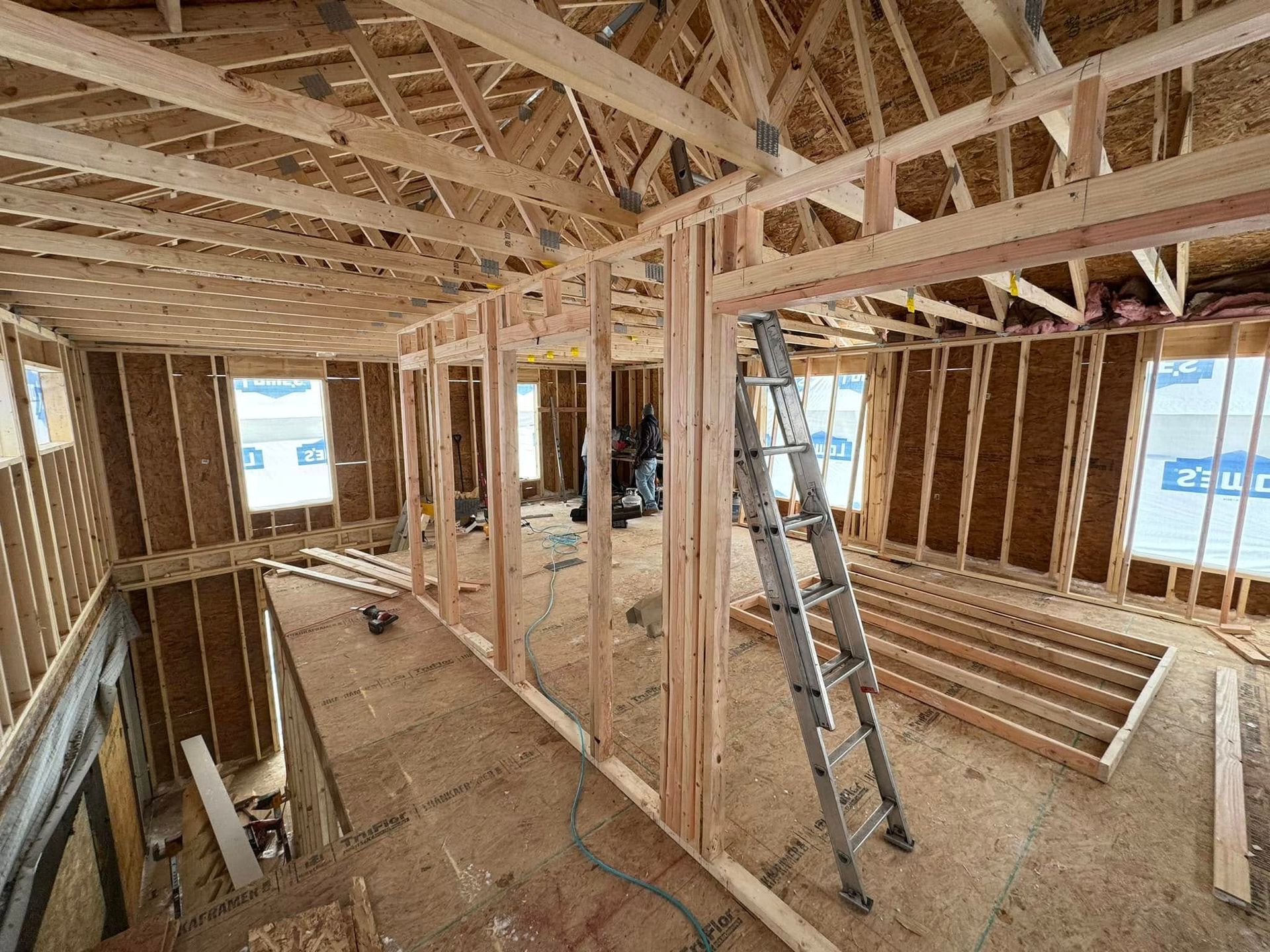 Once framing and insulation are complete, you'll see how much natural light reaches the interior and how the open layout allows for flexible furniture placement and room definition. Electrical and plumbing rough-ins are installed during framing, so outlets, lighting, and fixtures go exactly where you need them. Drywall, flooring, cabinetry, and trim bring the space to a finished residential standard, and high-end options include vaulted ceilings, custom millwork, and premium countertops.